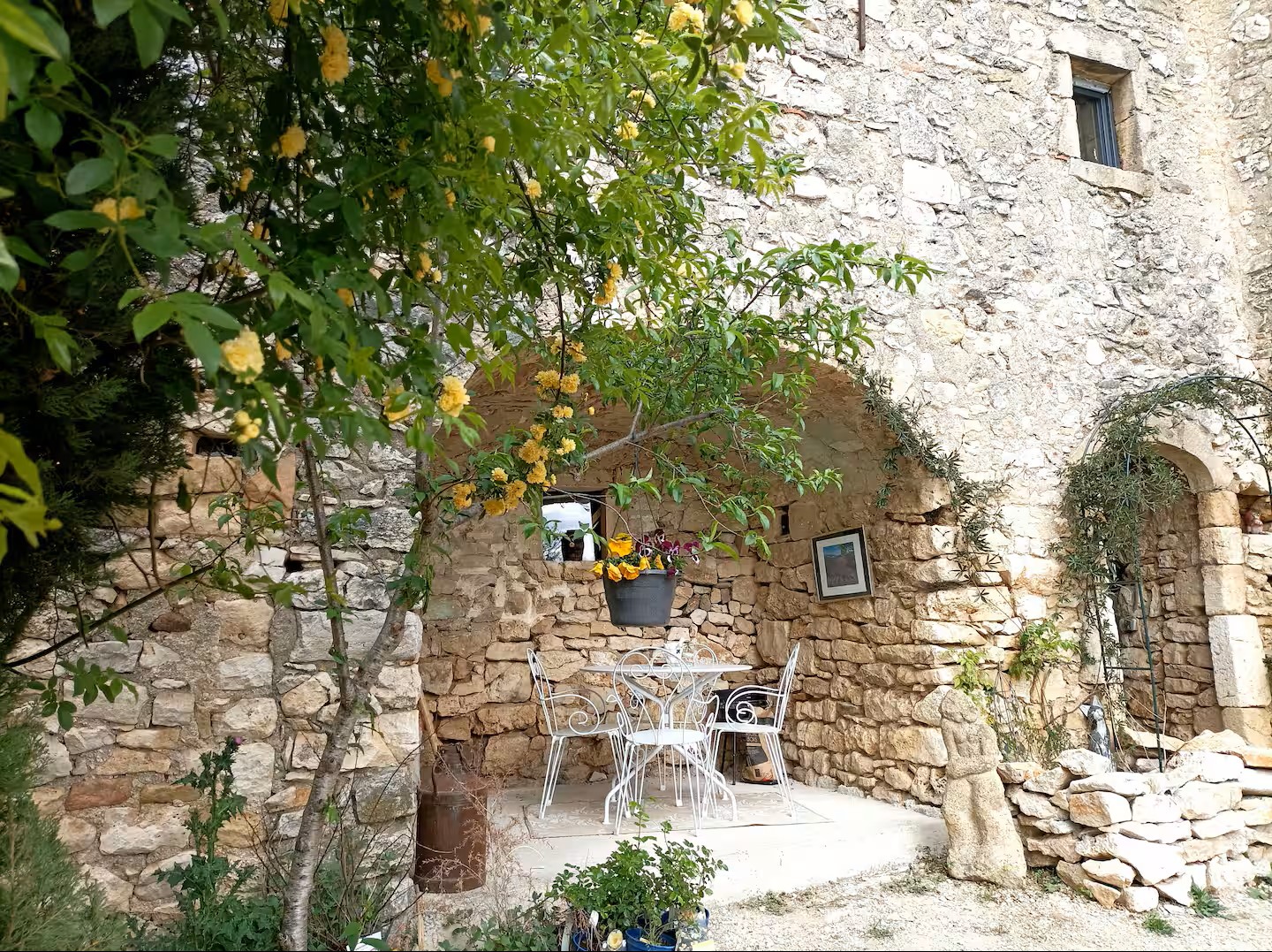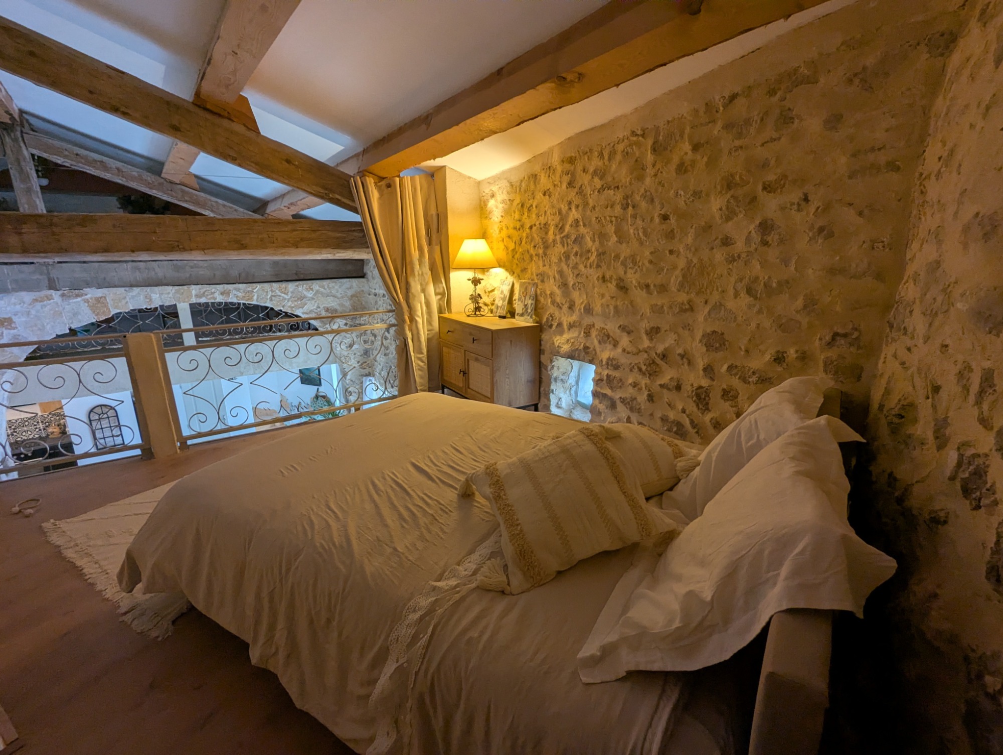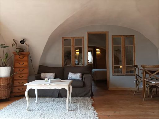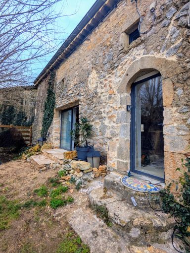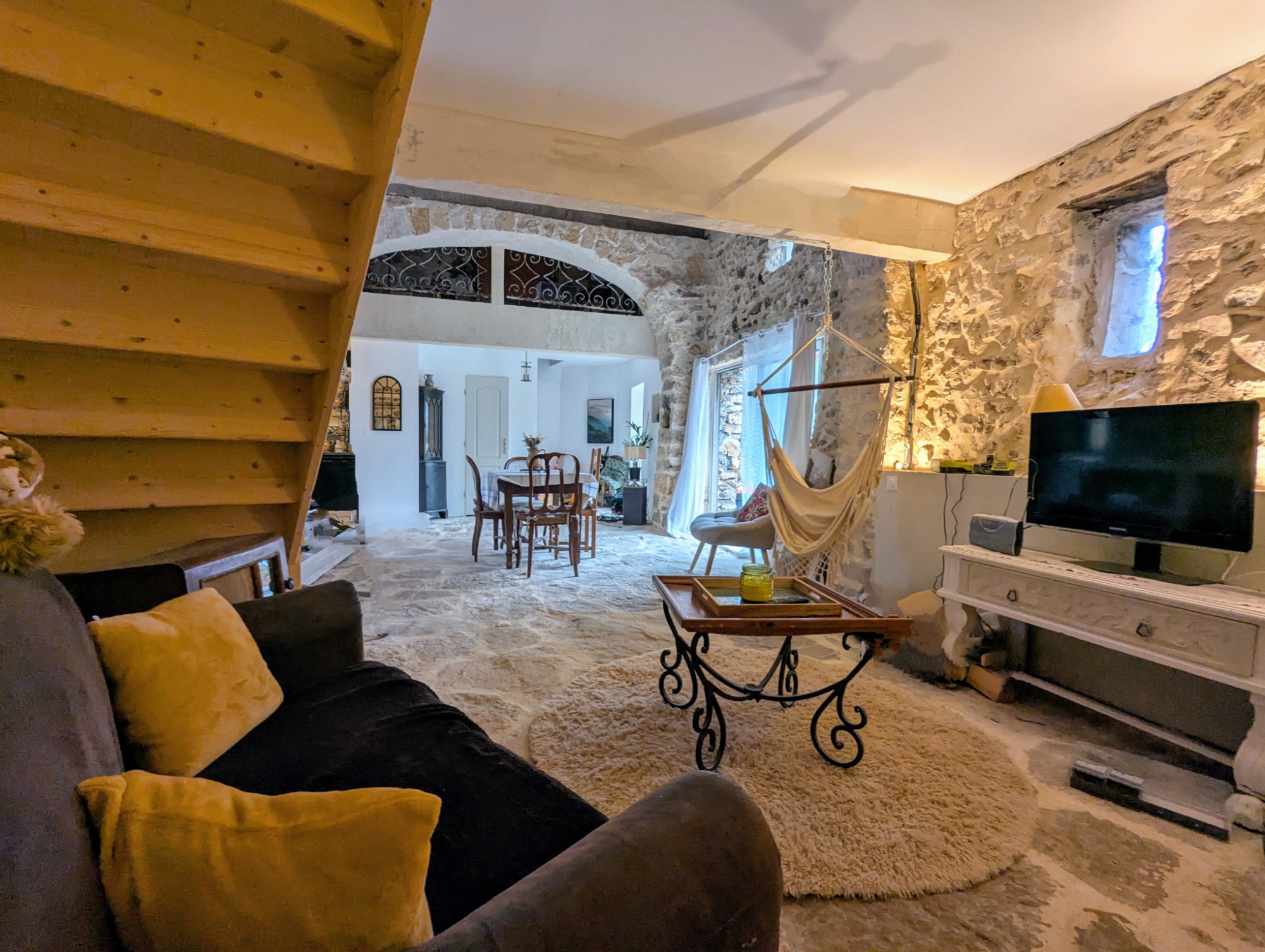 1 grand espace de 50m2 de salon et salle a manger avec arche en pierre
